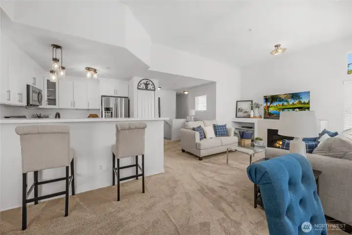 1% temporary rate buy down and appraisal credit* Experience luxury and comfort in this top-floor condo in the desirable Ridge at the Highlands. This beautifully updated 2-bed, 2-bath home features a modern kitchen with high-end cabinetry, quartz countertops, stainless steel appliances, and a spacious pantry. Both bathrooms boast stylish, contemporary finishes. The primary suite includes a spa-inspired en suite and custom walk-in closet. Enjoy soaring 10’ ceilings, southwest-facing windows, a cozy fireplace, and private deck perfect for relaxing or entertaining. Includes attached garage, enjoy nearby trails, parks, and easy access to Hwy 9 & I-5 and local shopping and dining options.