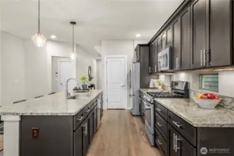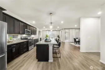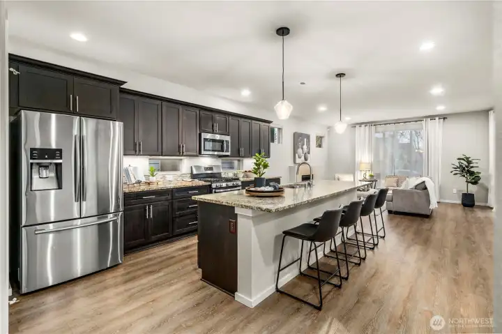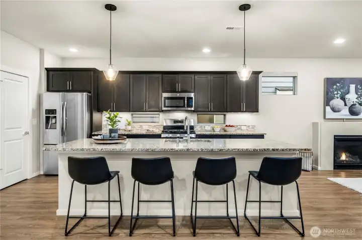 Welcome to Sunridge at Elk Run, one of Maple Valley’s most desirable communities. Tucked away on a quiet cul de sac near a neighborhood park, this modern 2017 built home is truly move in ready. Simply unpack and enjoy. The home features a freshly painted interior and has been impeccably maintained, offering a thoughtful and functional design throughout. The open great room layout is filled with light from expansive windows and two oversized sliding doors that open to the covered outdoor deck, creating a outdoor living room for year round enjoyment. The well appointed kitchen features a gas range, dark modern cabinetry, walk in pantry, oversized island, and a cozy fireplace anchoring the living space. The main floor den with a full bath offers flexibility as a guest suite or home office. Upstairs, a spacious bonus loft anchors four well sized bedrooms, including a Jack and Jill bath and a serene primary suite with a peaked ceiling and custom closet system. Additional highlights include a partial Mount Rainier view, air conditioning, EV charger, low maintenance turf, and a covered composite deck with sleek metal railings. Ideally located near Glacier Park Elementary, Tahoma High School, trails, and shopping, this home combines comfort, style, and convenience in one exceptional package. Homes like this do not last. Come see it today and settle in without lifting a finger.
