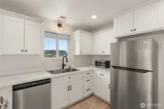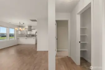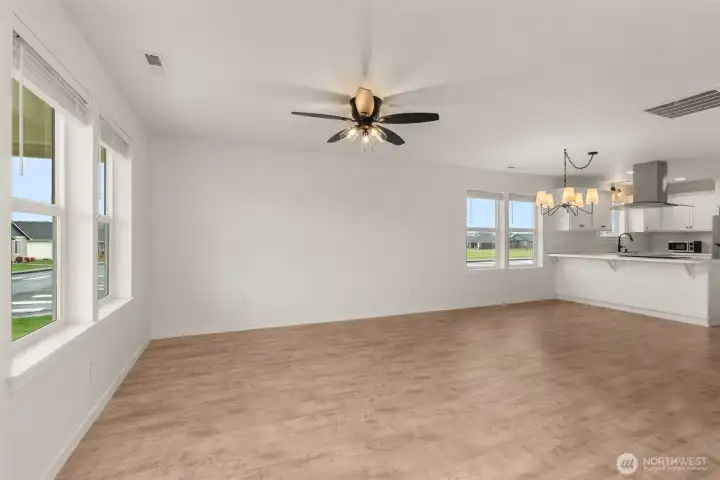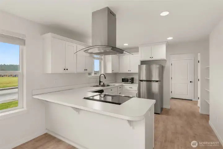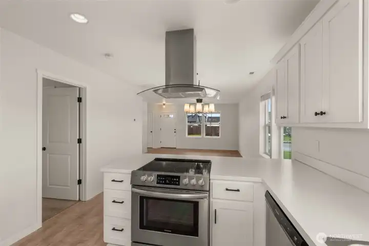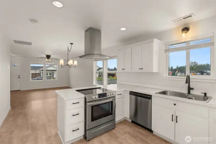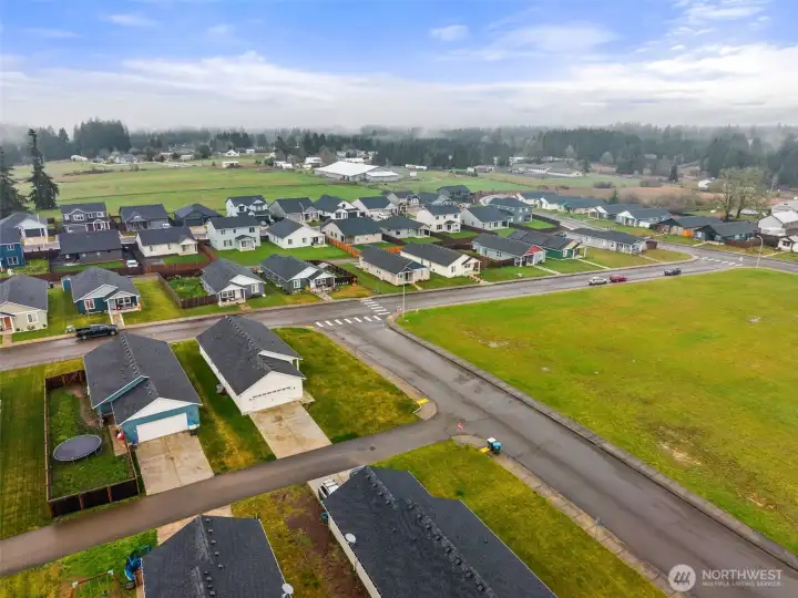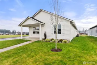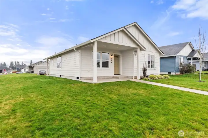 Modern open floor concept with this 2020 one-story home with 3 bedrooms and 1.75 baths on a desirable corner lot. Enjoy efficient year-round comfort with a heat pump providing A/C and heat throughout the home, plus upgraded sound-deadening insulation in all interior walls for added privacy and quiet. Water-resistant laminate flooring flows through the living spaces, complemented by upgraded interior light fixtures. The finished rear-entry garage adds functionality and curb appeal. Take in beautiful views of Mt. Rainier and appreciate the thoughtful design and low-maintenance living this home offers.