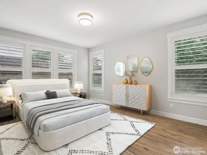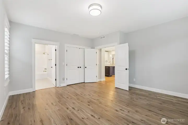 MORTGAGE SAVINGS MAY BE AVAILABLE FOR BUYERS OF THIS LISTING. Luxury living in this exquisitely crafted custom residence. Grand entry, expansive hallways, and a great room concept that offers sight lines throughout. Gourmet kitchen located in the center of the home with upgraded appliances including six burner gas stove, griddle, and an industrial hood. One primary bedroom with an ensuite located on the main level and a secondary primary bedroom on the upper level. Rich, wide plank floors and plantation shutters elevate the space. Over-sized covered patio with private yard and RV Parking. New Traditions home in an exclusive 81-home urban oasis with a private park featuring a full-size basketball court, play area, and walking paths.