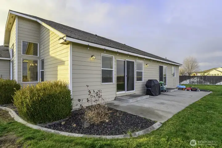 Welcome to this one-level rambler offering 1,636 sqft of comfortable living in a coveted neighborhood. Situated on nearly a 1/3 acre lot, this property features a fully fenced backyard, large patio, & a 10'x12' storage shed. Inside, abundant natural light enhances the airy feel created by vaulted ceilings & open concept living. Living room sliding glass doors lead to the backyard patio. The kitchen is a standout with three walls of cabinetry, stainless steel appliances, & built in desk. Primary suite includes sliding doors to the back patio, walk-in closet, and an ensuite bathroom featuring a jetted tub & standalone shower. Heated, attached 3-car garage. New water heater in 2022. HOA fees include community park and boat launch.