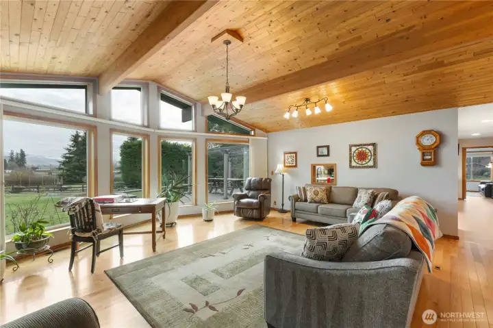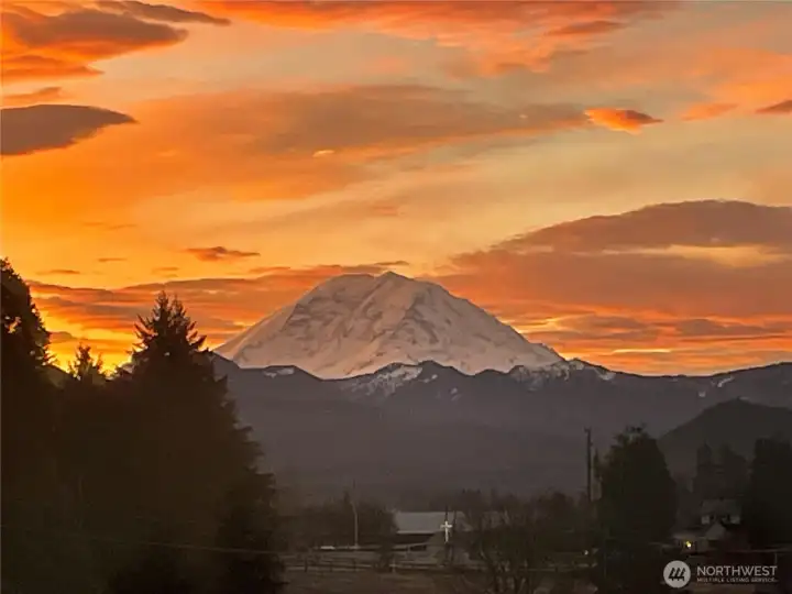 Exceptional single-story home with 2,750 sq ft on a 84,942 sq ft lot. Breathtaking, unobstructed views of Mt Rainier and the Cascade foothills from the main living areas. This 4 bedroom, 3 bath home features a spacious primary suite w/ private bath & walk-in closet and a versatile 4th bedroom currently used as an office/den. The kitchen showcases quartz counters, SS appliances, and flows seamlessly into bright living spaces highlighted with hardwood & durable LPV flooring. Huge 1,510 sf ft garage w/ storage cabinetry and dedicated shop space. Enjoy the expansive level grounds w/ garden area, outbuildings, endless outdoor recreation, and room to grow. This property offers space, views, and versatility rarely found. Close to everything.