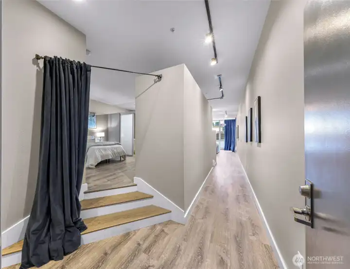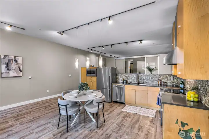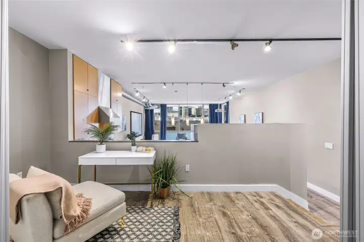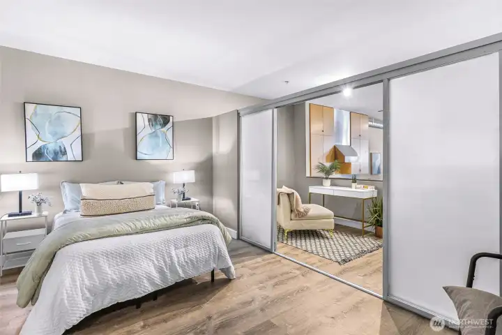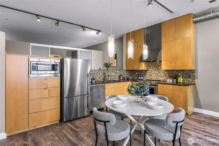 Stylish Urban Loft in the Heart of South Lake Union + 3 garage parking spaces! Premier unit, the largest 1 bedroom unit in the building - this modern, top floor loft is filled with natural light courtesy of the expansive wall of floor-to-ceiling windows that highlight the soaring ceilings & open layout. The kitchen features maple cabinetry, slab-stone countertops, tile backsplash, stainless steel appliances, & a deep sink - perfect for cooking & entertaining. The raised bedroom suite offers generous closet space + a spacious en-suite bath. Working from home? The den is the perfect work space, or add a couch for the ideal reading nook/guest space. Radiant heating, A/C hookup, in unit W/D, & separate guest bathroom for comfort & convenience. Secure building, designated garage parking, fitness center, pet friendly, no rental cap. Perfect transit & walk score, close to local offices, and easy access for commuters - come see this gem! Mortgage savings may be available for buyers of this listing.