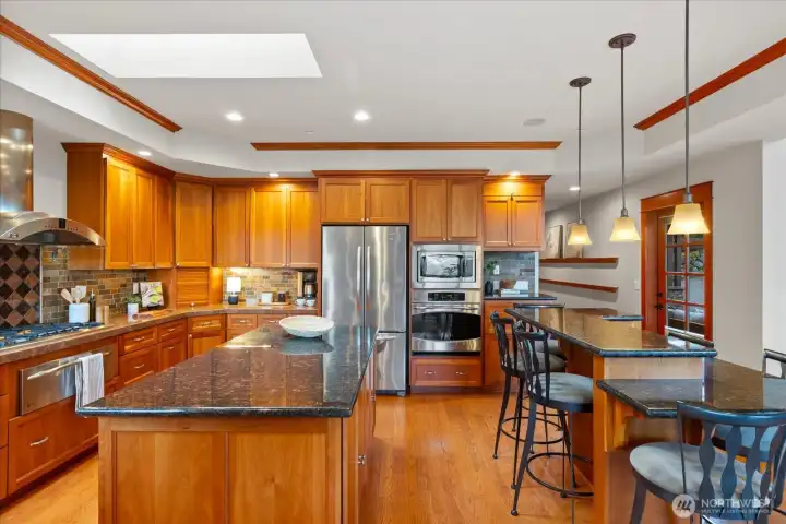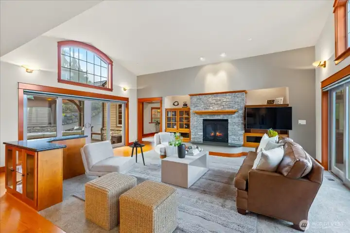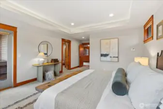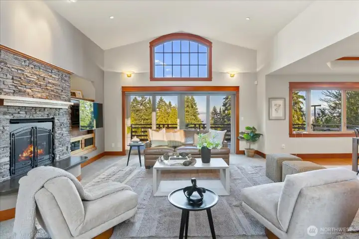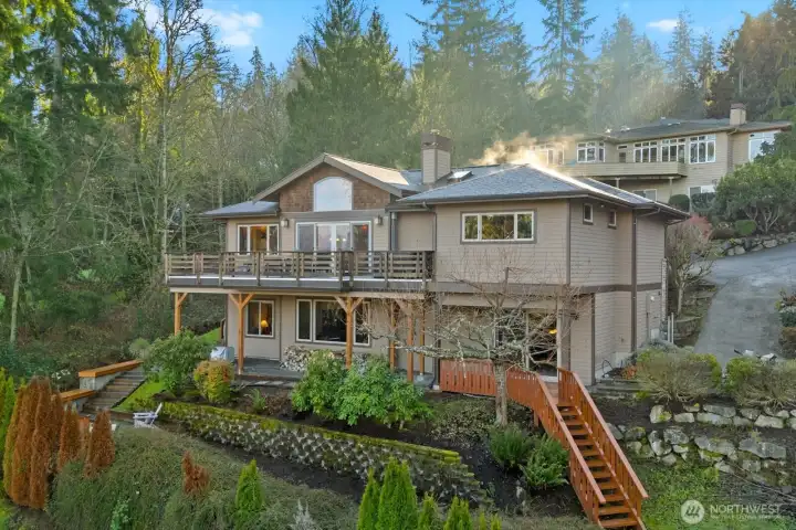 Custom Northwest Craftsman with stunning Lake Sammamish and Cascade views. Designed for entertaining, open chef's kitchen flows to expansive deck and patio spaces. Ideal main floor living features primary suite, office, and laundry. Hot tub off primary makes for easy relaxation. Impressive entry showcases exquisite woodworking details with barrel ceiling and beautiful winding staircase. The lower level offers a spacious rec room, additional bedrooms, and generous storage. A 3 car garage with EV hookup adds modern convenience, with a shop for all of your hobbies. Enjoy worry-free living with new roof and transferable warranty. Set in a prestigious well-established neighborhood, this home combines timeless craftsmanship with modern comfort.