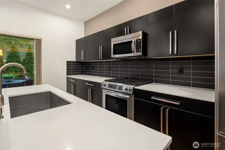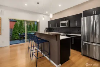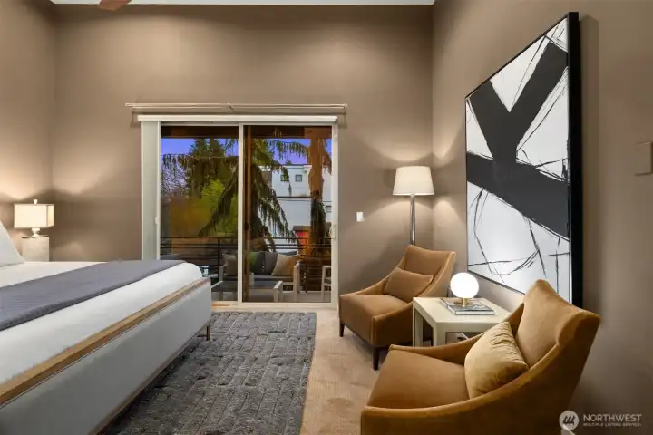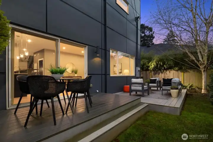Striking modern architecture + stylish interior features highlight meticulously maintained Crown Hill home. Corner lot with fully fenced yard + mature maple trees. Natural light cascades throughout space, illuminating gleaming hardwoods + high ceilings. Oversized windows + fireplace are other great elements. Heart of this home is the gourmet kitchen with sleek cabinetry, quartz counters, pantry + premier stainless appliances. Retreat to primary bedroom suite, a generously sized sanctuary with balcony. Two bedrooms feature large walk-in closets, and the primary’s includes custom built-ins. Expansive deck for entertaining. Workspace in attached garage. Blocks from groceries, restaurants, cafes, parks + public transit.