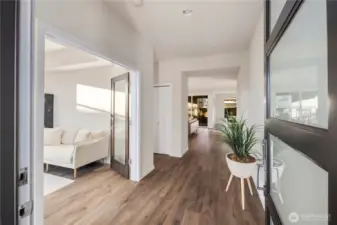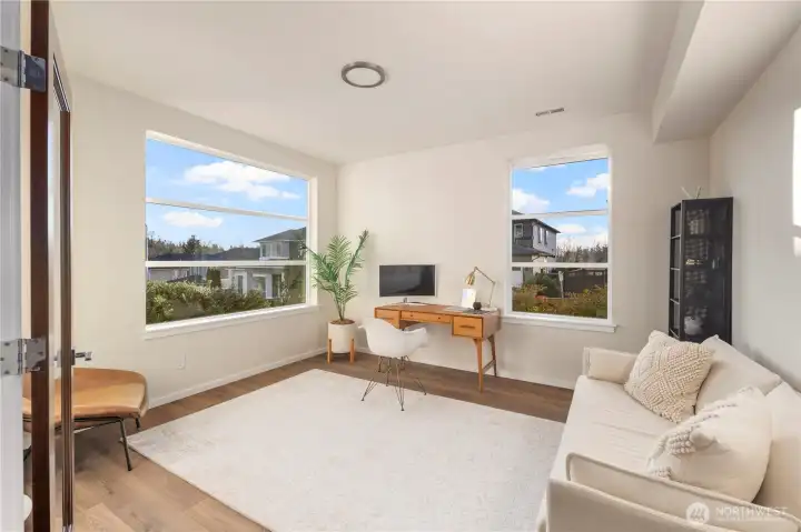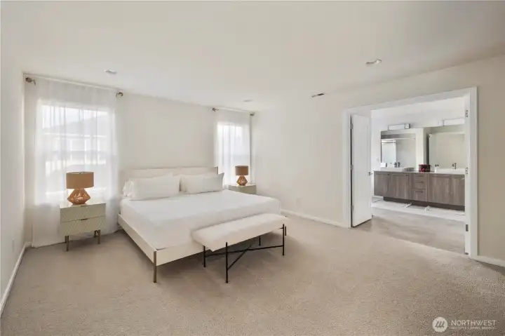 Discover luxury living in this stunning MainVue home in Lea Hill! Featuring 4 beds, 2.5 baths, an office, and a bonus room across 3,082 sqft. The chef’s kitchen boasts white soft-close cabinets, quartz countertops, SS appliances, an oversized island, and a walk-in pantry with extended storage. Enjoy the open layout with laminate floors, expansive windows, and a covered outdoor deck. The huge primary suite offers a 5-piece bath with dual vanities, a custom tile shower, a soaking tub, and a walk-in closet. Corner lot with Mt. Rainier views, 3-car garage, and minutes to schools, parks, and highways. Tour today!