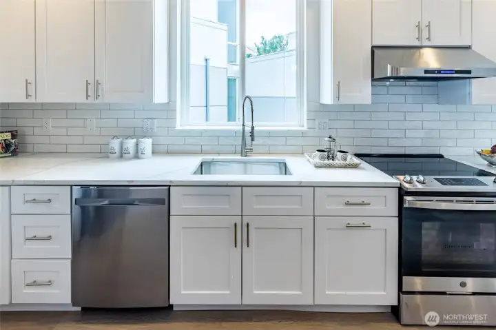 Wonderful north Beacon Hill townhome amid private setting. Well-appointed unit backs to greenbelt and conveniently located at the confluence of I-5 & I-90, just minutes to downtown Seattle and eastside employment centers. Nearby Eastlink light rail station expects to open in 2026 further enhance its accessibility. This spacious 1,640 sqft unit features 3Br/3Ba, large primary suite offers walk-in closet, dual vanity and plush rain shower. Efficient electric fireplace adorns the living room, generous kitchen offers S/S appliances, extensive island & abundance of cabinets. Notable highlights include floor to ceiling windows, 1-car garage, additional parking space & panoramic rooftop deck. No HOA dues.