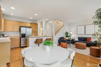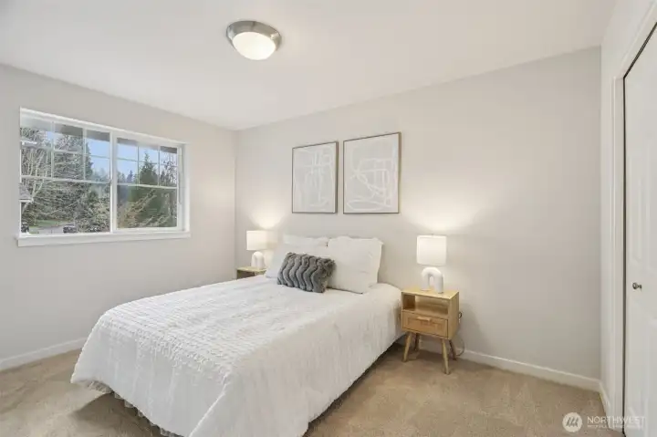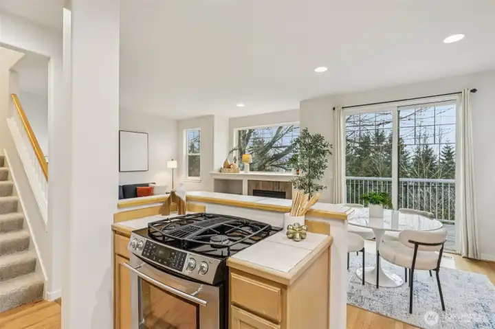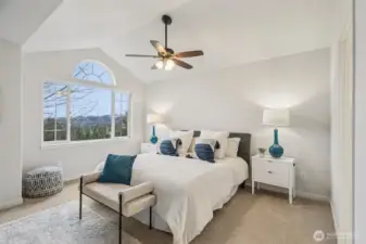 Wonderful corner unit with Mt. Rainier views occupies the central location in boutique 24-unit complex. This light-filled home lives like a single family and has been updated with fresh paint and carpet upstairs. The main floor is open concept with hardwoods throughout, a powder room, gas fireplace, high ceiling, and a private deck. Upstairs, the vaulted primary suite offers Mt. Rainier views, a walk-in closet, en-suite spa bathroom, and a bonus office/sitting area. Two more bedrooms, bathroom and a full-size laundry complete the upper floor. Attached 2-car garage complete the package. Minutes from downtown, wine country, and commuter routes. Low HOA dues, strong financials, no rental cap, and small pet-friendly—don’t miss it!