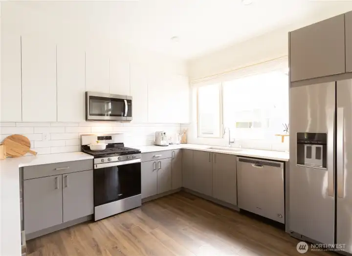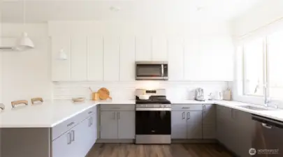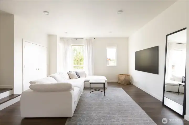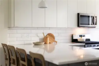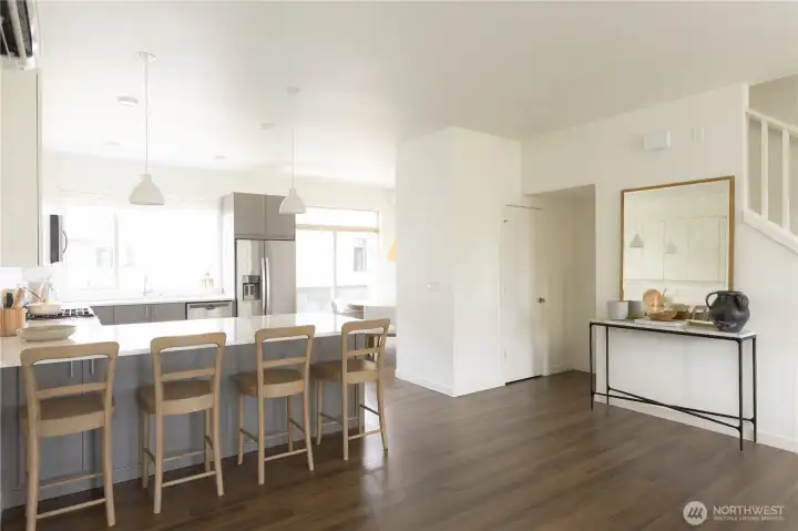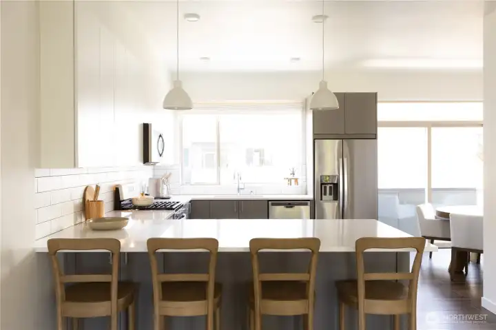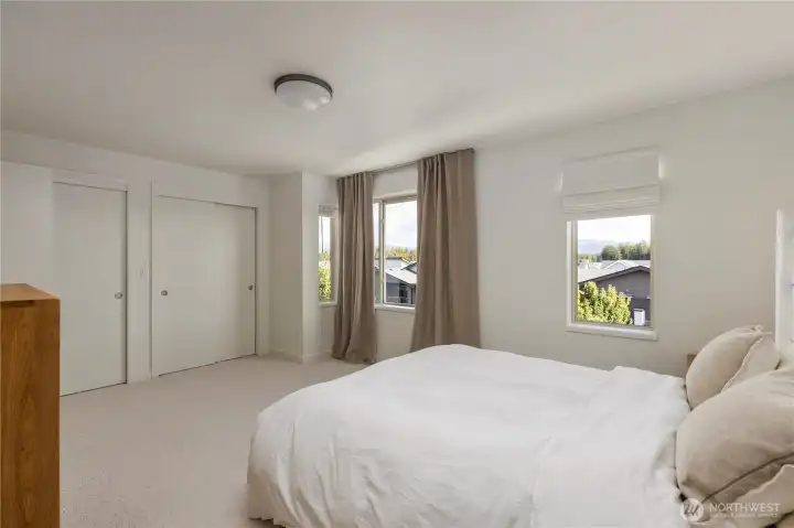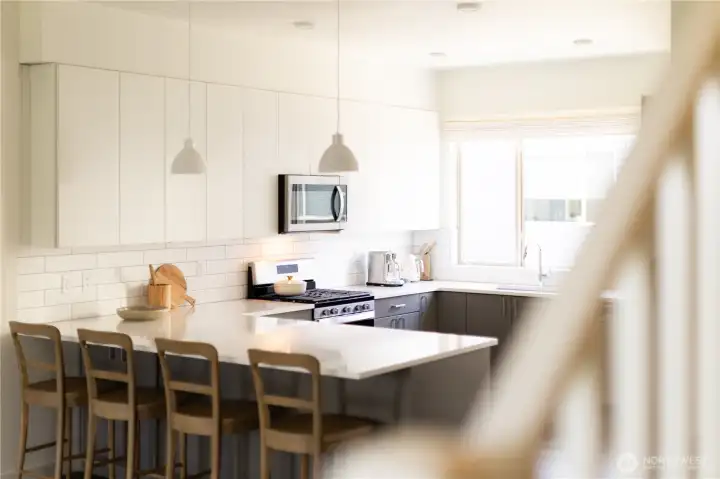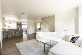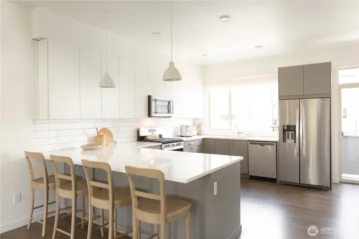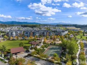 Welcome to this stunning townhome in the sought-after Ten Trails community! This almost-new residence offers over 1,836 sqft of luxurious living with 4 bedrooms and 2.25 baths. The expansive open kitchen is a culinary masterpiece, featuring custom cabinets, quartz countertops, SS appliances, and an elegant tile backsplash. Enjoy beautiful laminate floors, refined millwork, plush new carpets, and modern window blinds throughout. The spacious primary suite boasts breathtaking views of Mt. Rainier and a lavish bath with dual sinks and a custom walk-in tile shower. An additional bedroom or office on the main level adds versatility. With a generous 2-car garage and access to Ten Trails' amenities, including parks and trails, come tour today!