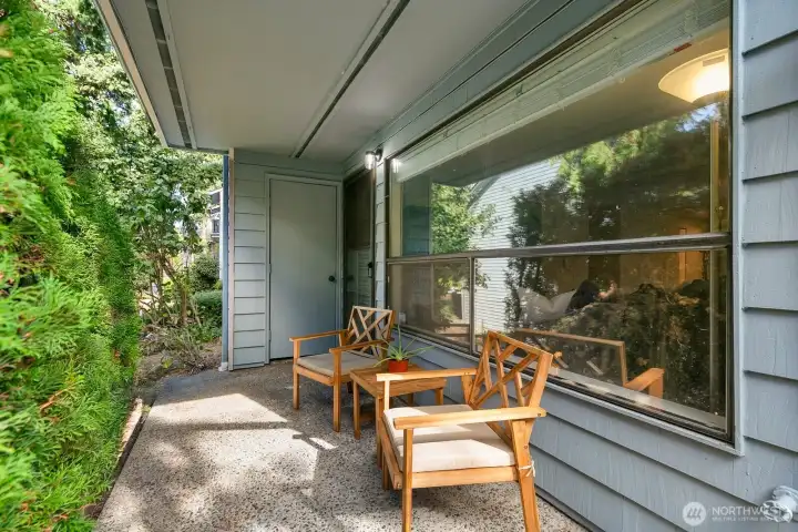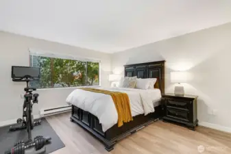 Beautifully refreshed condominium in prime location near 1-5, Hwy 99 and ample amenities! New laminate hardwood floors and baseboards throughout. The light and bright kitchen features a cozy eating nook, stainless steel appliances, and farmhouse sink. Spacious open concept living room where you can enjoy movie nights by the wood burning fire! The primary bedroom features a walk-in closet with brand new closet system. In-unit washer/dryer conveniently located in the hallway- all appliances included! This private, ground-floor end unit boasts 2 outdoor living spaces and 2 parking spots and plenty of street parking for additional guests. No current or upcoming assessments. Pre-inspected for your convenience!