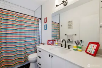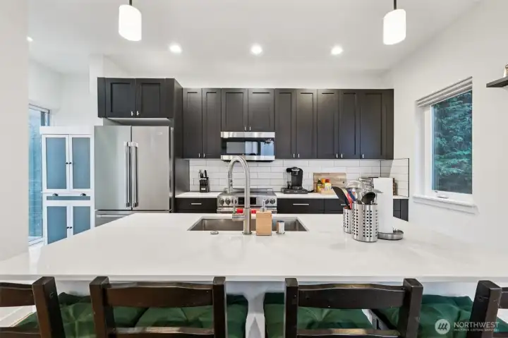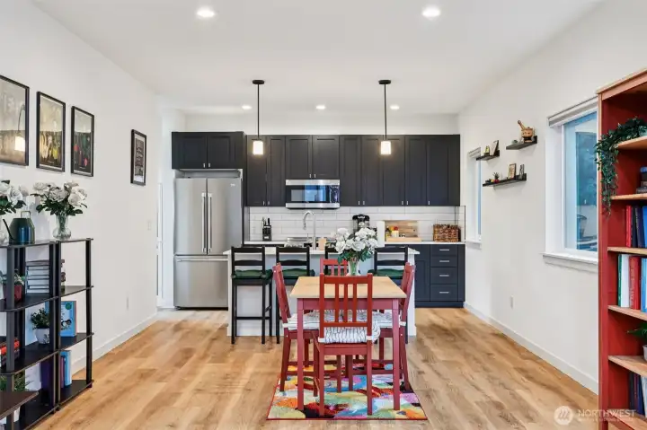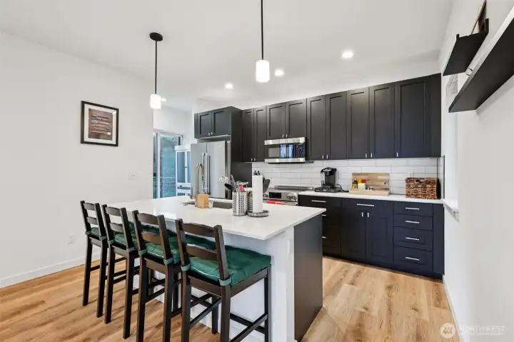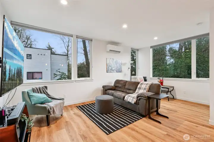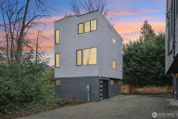 Welcome to this move in ready modern home located in a cozy six unit community. Designed with clean lines and thoughtful finishes, the kitchen features quartz countertops and a spacious island ideal for cooking and entertaining. The bright and open living area is filled with natural light from expansive windows throughout. The primary suite offers a relaxing retreat with designer tile finishes, while the exceptionally large bedrooms provide flexibility for guests or a home office. Enjoy a private deck just off the kitchen, efficient ductless heating and air conditioning, and a rare attached garage. Minutes from Lake Washington, transit, light rail, shopping, and recreation. No HOA dues. Truly a convenient place to call home.