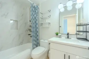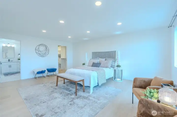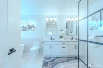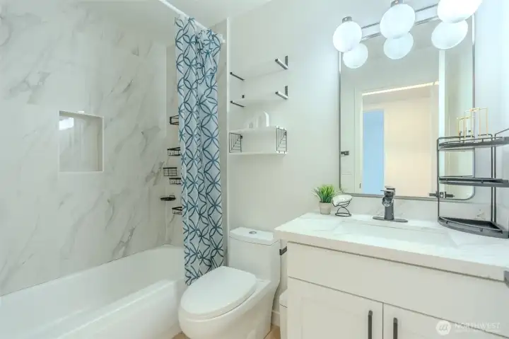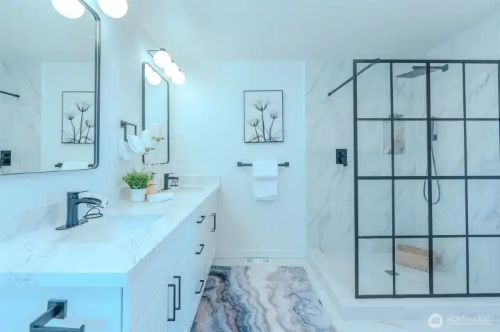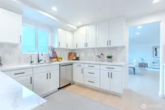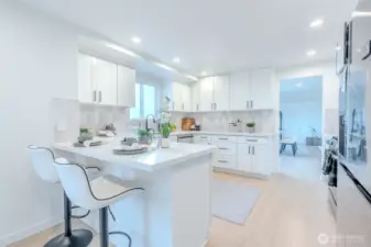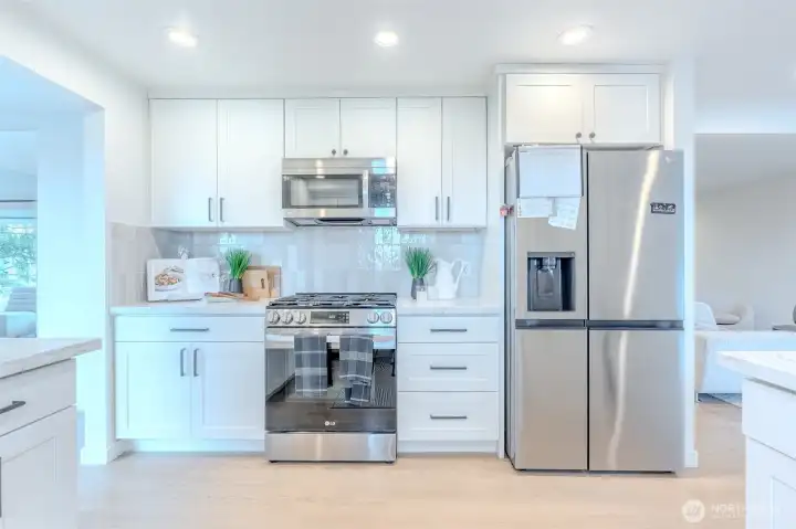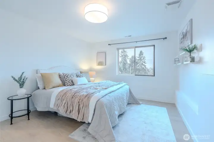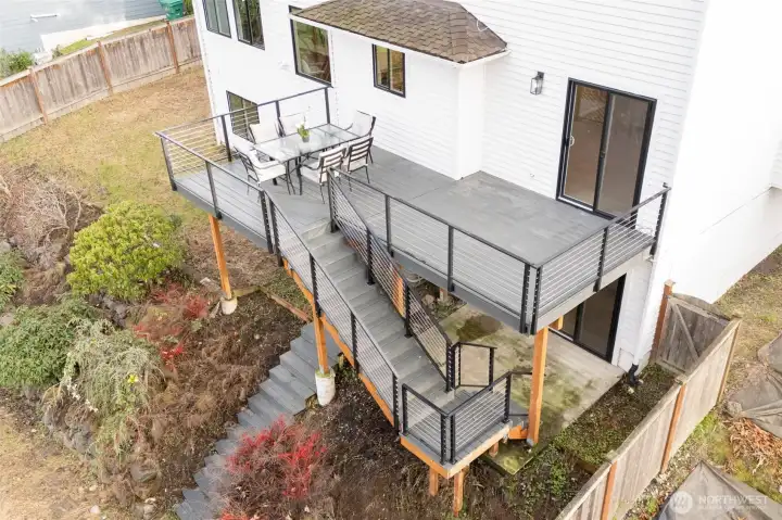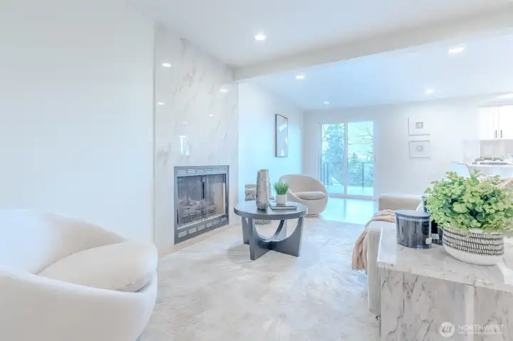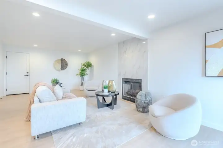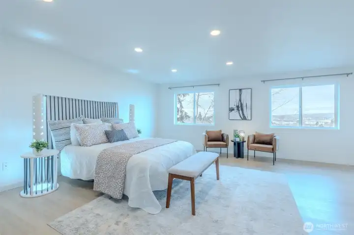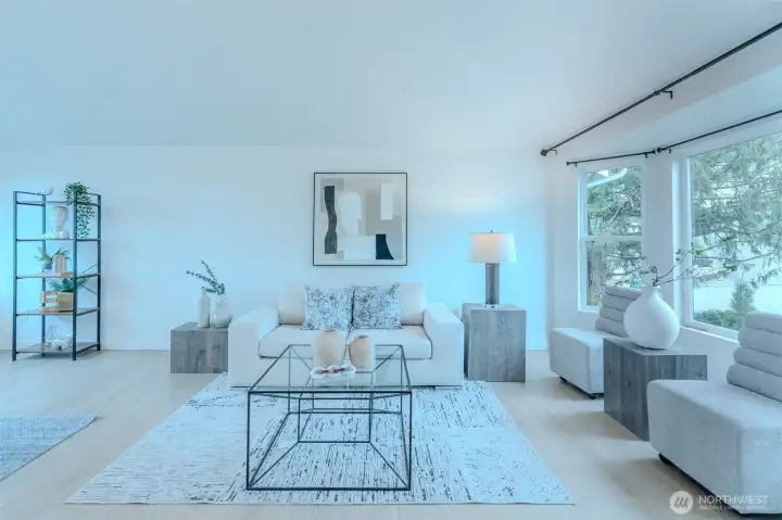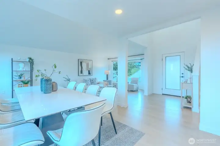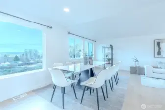 Experience elevated living in this beautifully remodeled home with sweeping Olympic Mountain and Puget Sound views. The expansive view deck is perfect for entertaining or unwinding, while the kitchen shines with quartz countertops, shaker cabinetry, and stainless steel appliances. The main level offers formal dining, living, and family rooms, plus a convenient half bath. Upstairs, the primary suite features stunning views and a spacious 5-piece bath, along with an additional bedroom and full bath. The lower level includes a generous rec room that opens to the newly landscaped backyard, two more bedrooms, and a full bath. Fresh paint and LVP flooring throughout. Complete with a 2-car garage and ample driveway parking.