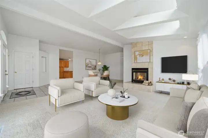 Come check out Lake Wilderness Villa, highly sought after 55+ gated community! Ready to move in... 4 bed, 2 bath, 2,280 sq ft rambler with spacious layout! Large kitchen with plenty of storage, counterspace and window facing the front. Upon entry enjoy the spacious living room and dining room with gas Fireplace and Cathedral ceilings! The spacious primary suite has a 5-piece en-suite and walk-in closet! Bonuses include A/C, Generator, private patio w/ garden shed, plenty of space to entertain! Home is just a few doors away from visitor parking. Community amenities include a clubhouse, game room, gazebo, sports court, and putting green. Dining, shopping, & everyday conveniences are just minutes away. Don't miss this opportunity!