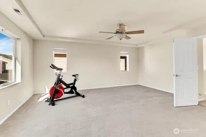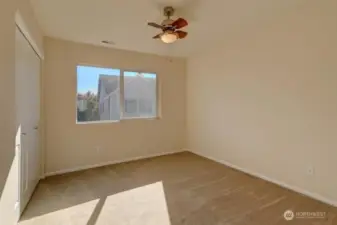 This three-bedroom, two-and-a-half-bathroom residence, located within the desirable Saddle Creek community, offers an exceptional living experience, complete with a private, level backyard perfect for relaxation and entertaining. The interior boasts fresh paint throughout, new hardwood flooring on the main level, and new carpeting upstairs. The floor plan features two full bathrooms on the upper level and a half bathroom on the main level. The master suite is equipped with a ceiling fan for added comfort. Residents benefit from access to the community's extensive playground, as well as convenient proximity to the adventure park, a leading football club, and the river, providing ample opportunities for recreation and outdoor activities.