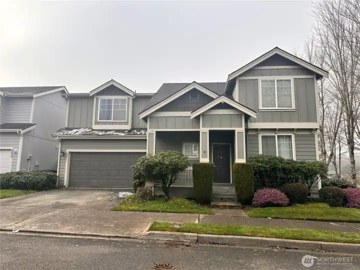 Well-maintained 1,830 SF home featuring 3 bedrooms plus bonus room and 2 full baths upstairs. Updated kitchen (2018) with quartz countertops, tile back splash, new cabinetry and appliances, open to dining and living areas with gas fireplace and convenient half bath. Laminate flooring on main level, brand-new carpet upstairs. Spacious primary suite offers walk-in closet and 5-piece bath with shower and soaking tub. Updated bathrooms and newer roof (2018). Fully fenced backyard, HOA-maintained front yard landscaping, and large park directly across the street. Excellent location with comfort and convenience.