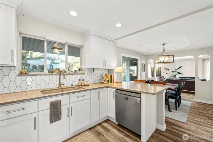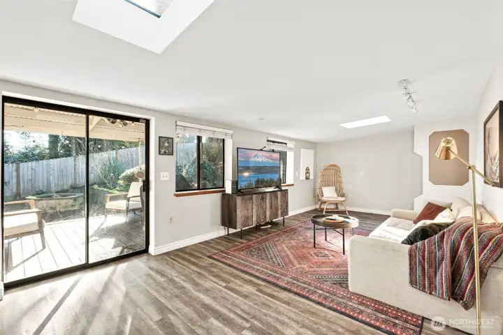 Tucked into the heart of Fircrest, this home is the kind of place where daily life feels settled, intentional, and easy. Mornings start with light pouring in through skylights as the house slowly comes to life. Coffee poured in the kitchen, conversations drift between the two living spaces, and there is room for everyone to spread out without feeling disconnected. Whether it is a quiet weekday or a full house on the weekend, the layout flows in a way that simply works. At the far end of the home, the primary suite feels like a retreat. There is space for a small desk or reading nook, perfect for easing into the day or winding down at night. The bathroom feels more like a personal spa than a typical primary bath, with a soaking tub, walk in shower, double sinks, and thoughtful finishes that invite you to slow down. Evenings naturally move outside. The covered deck becomes a favorite spot for dinner, the fire pit draws all together as the sun sets, and the private yard offers just enough space to relax without feeling like a chore. Mature landscaping creates a sense of privacy & calm that is hard to find, especially in such a central location. The oversized garage easily handles cars, storage, hobbies, and weekend projects, while the metal roof adds peace of mind for decades to come. Everything here feels cared for, updated, and ready for the next chapter. This is a home where routines feel comfortable, gatherings feel natural, and Fircrest living truly shines.