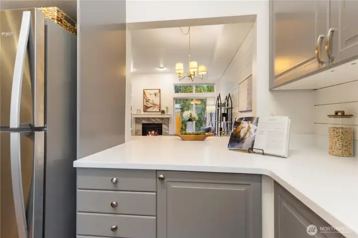 Move-in ready starter home! This bright 3-bedroom townhome-style condo lives like a single-family home. Soaring 12-foot ceilings and large windows fill the open living space with natural light, while the cozy gas fireplace makes it ideal for relaxing nights at home. The gourmet kitchen offers SS appliances and generous cabinet space. Upstairs features 3 bedrooms including a vaulted primary suite w/ updated bath & nearby laundry. Attached 1-car garage plus 2 extra dedicated parking spaces. HOA dues includes water/sewer. Located in a quiet 17-unit community within the Edmonds School District, close to parks, shopping, Alderwood Mall, Lynnwood light rail station, & easy I-5/405 access.