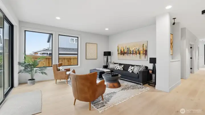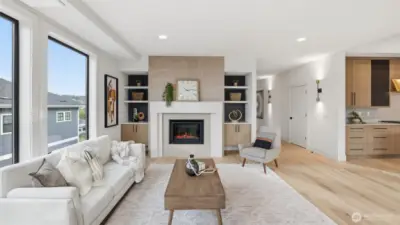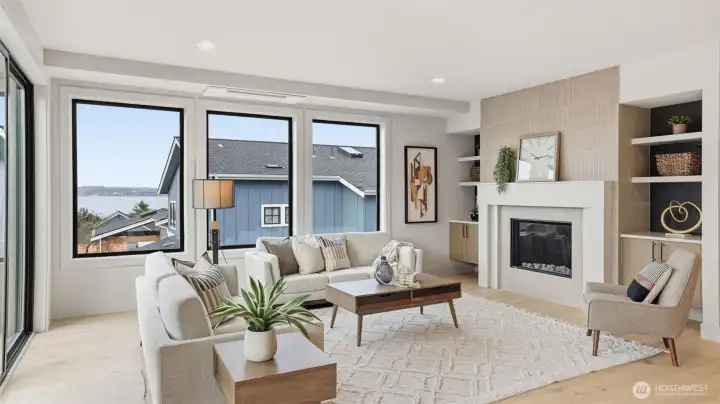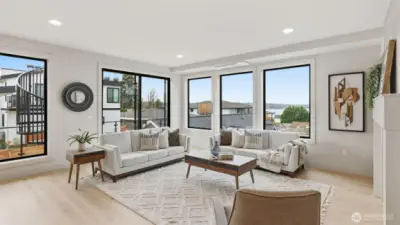 Avon Development presents a striking NW Contemporary in Lower Kennydale with panoramic views of Lake Washington and the Olympic Mountains. Vaulted ceilings and open living spaces flow into a chef’s kitchen and expansive rooftop deck—ideal for entertaining or quiet mornings. The luxe primary suite features a spa-style bath and custom walk-in closet, while additional en-suite bedrooms offer guest comfort. Enjoy A/C, a fenced yard, pre-built elevator design, and 3-car garage. Nestled near trails, bike paths, and waterfront parks, this home blends modern design with an exceptional lifestyle.