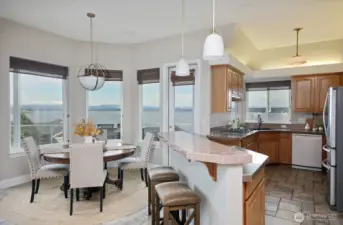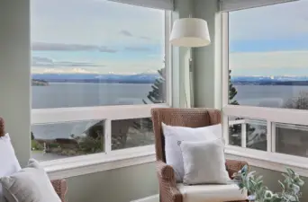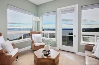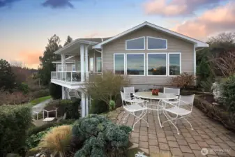 This Wrightsman Place luxury resort style home is designed for easy living on a secluded cul-de-sac, just minutes from the Mukilteo Ferry and the quaint town of Langley. Enjoy commanding 180 degree views of the Sound, Cascade Mountains & Mt Baker through the expanse of windows in this custom-built home in the desirable Clinton View Estates. There is no better place to watch beautiful sunrises and look for whales frolicking in the sound, the eagles soaring & boats sailing by. Vaulted ceilings & spacious rooms offer an elegant living experience. Wake up to stunning views of the Sound from the primary suite, a sumptuous retreat with a luxurious 5-piece bathroom, enviable walk-in closet & relaxing sitting area with a private balcony. An interior stairwell provides easy access to a second living space, complete with a bedroom, kitchen, den/office area, full bathroom, providing flexibility for multi-generational living, home business or ample guest space. The established landscaping is exceptionally charming, with several sitting areas, a water feature and fire pit, where you can enjoy the uniquely Whidbey vistas of the Sound with the Cascade Mountains as a backdrop. Two separate garage accesses with one located on each floor allow direct access to the living spaces & provide plenty of covered parking, as well as a covered RV spot. A workshop area for your projects or extra storage can be accessed from the lower level of the home & is open to the lower garage.