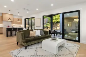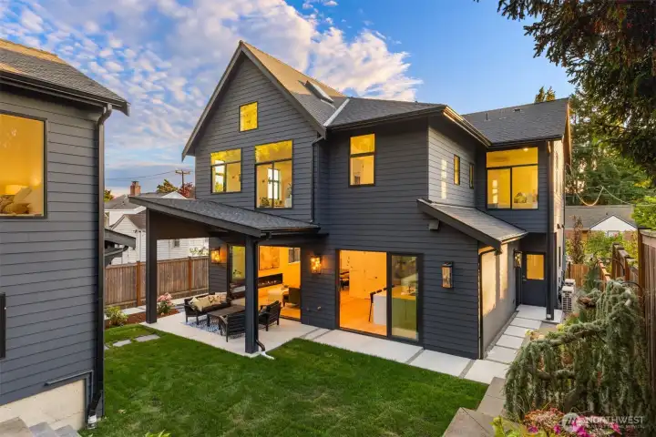 Thoughtfully designed, stylish custom Magnolia home combines luxury w/practicality. Open concept abundant w/natural light via high ceilings & oversized windows. Dining area, great rm w/gas fpl, & high-end kitchen w/ 2 Nana-walls open to outdoor covered seating & private yard. Full BR suite, powder, mudroom, & 2 garage w/ EV charger on main. Mini splits. Elevated style continues upstairs w/vaulted ceilings, luxurious primary suite, 2 add'l bed/baths, family rm, & laundry. 2 BR/1.5 BTH DADU w/ tremendous income potential including Air B&B! Quiet location close to playfields, Magnolia Village, Discovery Prk, Met Market, Locks + easy distance to Ballard & Downtown Seattle. Bluetooth speakers. Builder Blue-tape w/t prior to closing.
