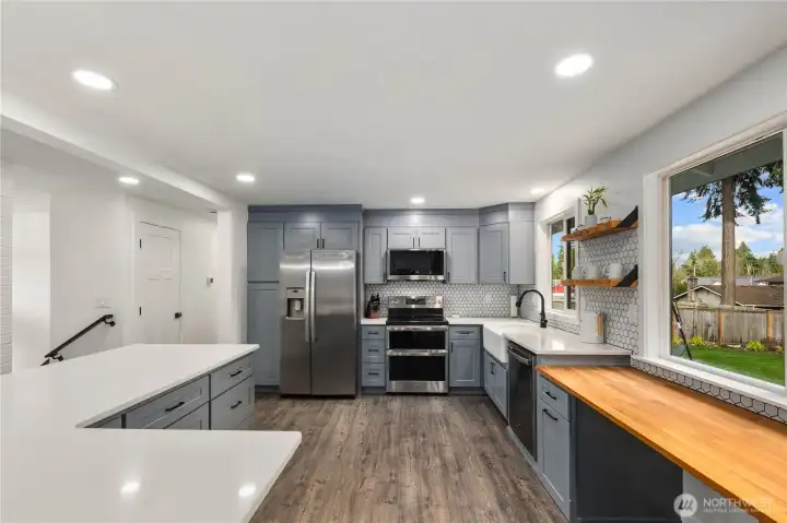 Welcome to this Beautifully updated 2,334 sq ft home in the heart of Edgewood featuring 3 bedrooms, 2.5 baths, and a versatile bonus room. Extensive recent renovations include a new roof, siding, HVAC, windows, paint, kitchen updates, and refreshed landscaping. Enjoy an inviting open-concept layout highlighted by an expansive kitchen with extended cabinetry, quartz countertops, oversized island, stainless steel appliances, and tile backsplash. Spacious bedrooms plus a lower-level bonus room offer flexible living with a separate entrance—ideal for multi-gen living or work-from-home. Oversized fully fenced yard with RV parking, extended driveway, and large garage. Minutes to schools, shopping, and highways. Tour today!