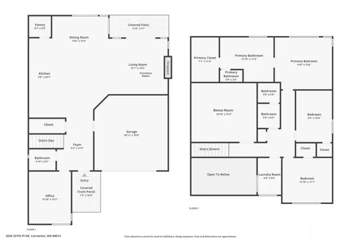 Standout Carnation home in a central location! Meticulously maintained and upgraded - better than new. Grand two-story entry opens to 3 bedrooms, office, and bonus room. Chef’s kitchen with stainless appliances, quartz countertops, oversized island, walk-in pantry, and custom glide-out shelving. Luxurious primary suite with soaking tub, large shower, and walk-in closet. Fresh paint. New laminate and carpet. Fully landscaped yards, covered patio with solar screen. Tech-forward with whole-house generator, smart security, lighting, thermostat, EV outlet, smart garage, and extensive shelving. Pre-inspected. Close to schools, shops, dining, Snoqualmie Valley Trail, and easy commute to Redmond & Bellevue. Welcome home!