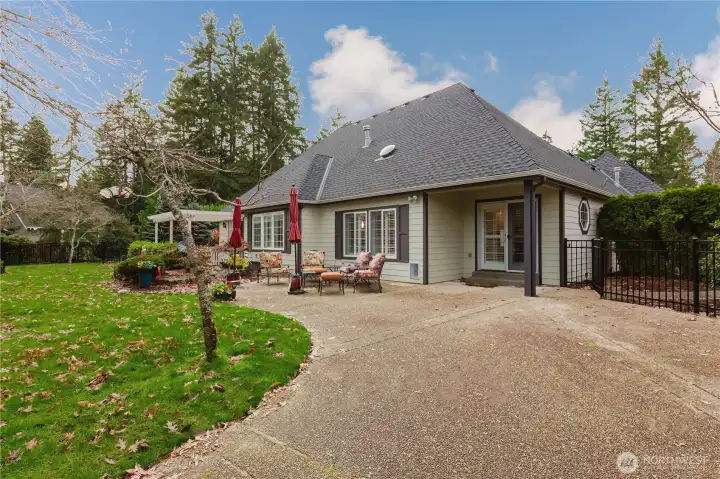 Located on the 4th fairway this half acre property features one story living, with windows on all sides allowing an abundance of natural light, a large primary suite with private bathroom featuring a jetted tub, full shower, deep closet a built in safe and heated flooring. New roof installed in 2016 with 50-year warranty. The luxury interior includes a formal dining room, a newly updated kitchen with quartz countertops and induction cooktop. there is a finished loft above the two-car attached garage with closet and entrance to the attic. The living and family rooms share a see-through cozy gas fireplace. The seller has had a rot iron fence installed encasing an amazing, landscaped setting, to enjoy life at home!
