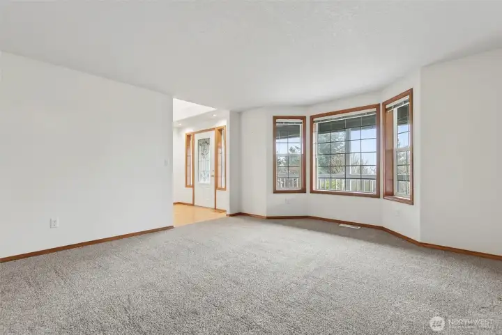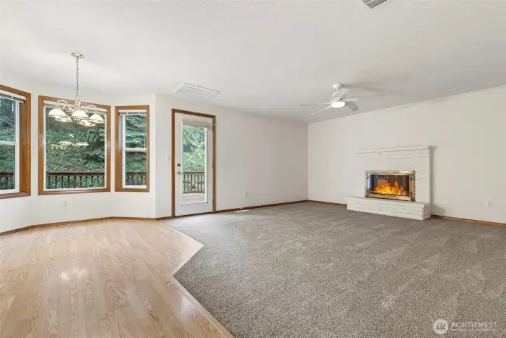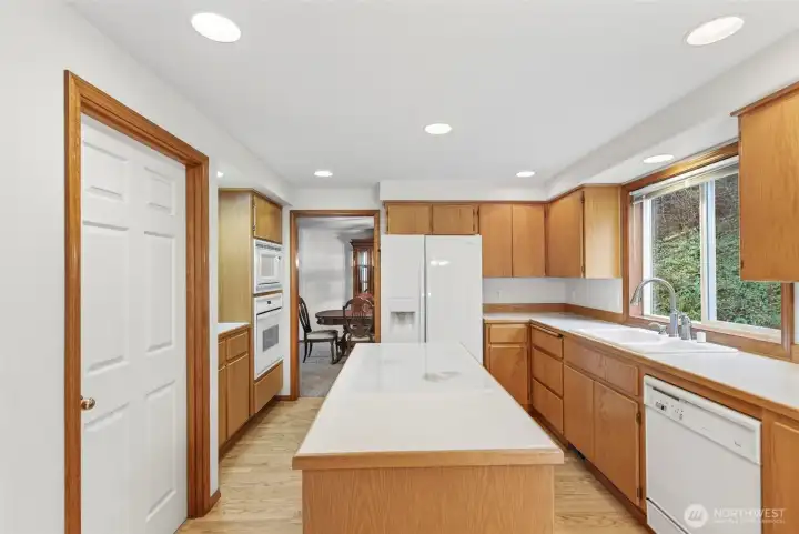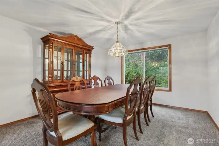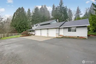 True pride of homeownership shines in this exceptional property set on over an acre at the end of a quiet cul-de-sac. Backing to a private greenbelt and surrounded by mature trees, this home offers rare privacy and space. A long driveway leads to a three-bay garage, plus a separate mother-in-law unit ideal for multigenerational living or rental income. Enjoy outdoor living on the wraparound covered porch and expansive deck, perfect for entertaining while overlooking your serene oasis. Inside, the home features a formal dining room, breakfast nook, living room, and family room. The functional kitchen includes a pantry and peaceful views. Brand-new roof and carpet throughout complete this move-in-ready retreat.