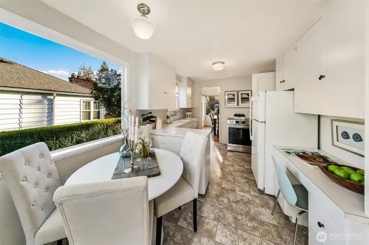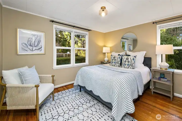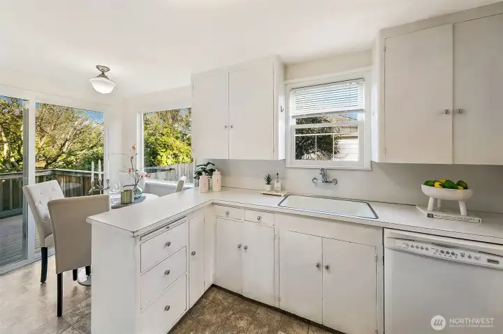 Welcome to this delightful mid-century home in Wedgwood, one of Seattle’s most beloved neighborhoods. Large picture windows invite you to relax in the comfortable living room centered on a cozy fireplace. Another large window enlightens a dining room which flows to a functional kitchen with desk and nook area plus easy indoor–outdoor flow to a deck and large, level backyard-perfect for gardening, play or entertaining. Well-maintained original hardwood floors run throughout the home, including the two bedrooms on the upper floor, which also boast mountain views. The spacious lower-level includes a rec room, utility and laundry. Ideally located near top-rated schools, cafés, and next to Penguin Park. Close to UW, UWMC, & Seattle Children’s.