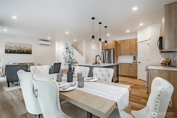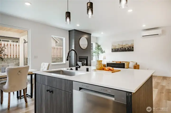 Thoughtfully designed for flexible living, this 4-bedroom home features a primary suite on the main floor plus an additional main-level bedroom, ideal for guests, a home office, or multi-generational living. The main level offers soaring ceilings, LVP flooring, & a cozy propane fireplace. The kitchen is finished with flat-panel cabinetry, quartz countertops, and upgraded appliances. Enjoy year-round outdoor entertaining on the covered back patio. EV charger in the garage and an efficient mini-split heat pump for heating and cooling. Slab-on-grade construction. Only 35 minutes to Bellingham and 5 minutes from downtown Blaine, I-5, and the border. Preferred lender savings include a 1% lender credit plus a $5,000 seller credit.