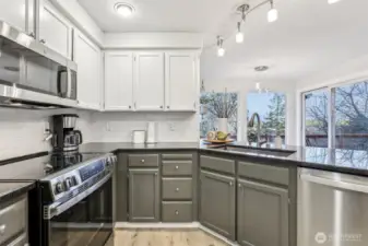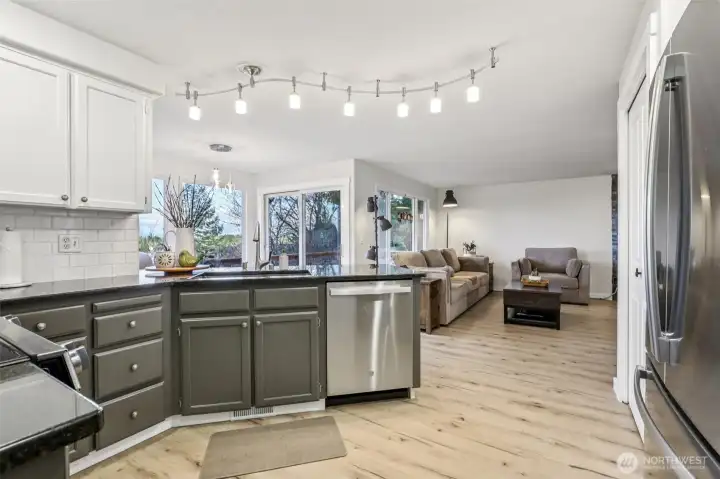 Must-See Home beautifully updated w/ a spacious open floor plan. The the kitchen shines with freshly painted cabinets, granite countertops, new tile backsplash, New SS Appl that all opens seamlessly to the GR & dining nook, w/ a door leading to a new wrap-around deckâperfect for relaxing or entertaining while taking in the views. Upstairs, the large prim ste features a WI closet w/ organizer, updated prim bath w/ double vanity, & a private slider to the deck. 2 additional bdrms & a bath complete the upper level. Recent updates include flooring, interior paint & exterior trim paint, interior doors, railing, trim, & Stone FP surround. Enjoy the covered front porch, 2-car garage, & a peaceful setting that truly feels like home.