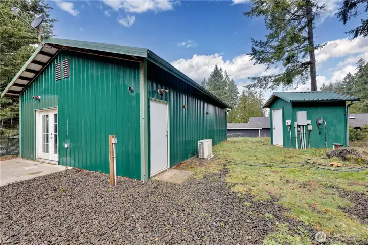 Fully fenced and gated .81-acre private lot offering exceptional privacy while remaining just minutes to downtown Silverdale, St. Michael Medical Center, local military bases, and the Puget Sound Naval Shipyard. The main home features nearly 1,800 sq ft of durable steel construction, providing strength, efficiency, and low maintenance. All appliances and TVs are included, making this a truly move-in-ready opportunity. A detached 24x36 shop is currently in progress for detached finished living space—ideal for a workshop, hobby space, or potential ADU. Building materials and tools will convey, allowing the next owner to continue the project with ease. A rare opportunity combining privacy, convenience, and future potential.