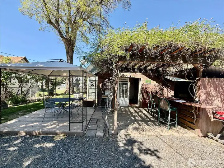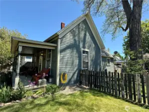 Newly added ductless mini-split!! This 140 year old home, circa 1885, has been lovingly updated and offers two bedrooms plus two bathrooms. The living room has tall ceilings making it feel very open and spacious, off of which is the primary bedroom and en suite bath with tiled walk-in shower. In addition to the kitchen, guest bedroom, and guest bathroom, there is an additional finished room that could be used in a variety of ways. The covered front porch offers a peaceful place to relax, as does the outside bar with trellis in the backyard. The garage is a perfect storage space or workshop. This classic charmer would make an excellent vacation rental, being centrally located two blocks from the heart of Dayton's historic downtown!