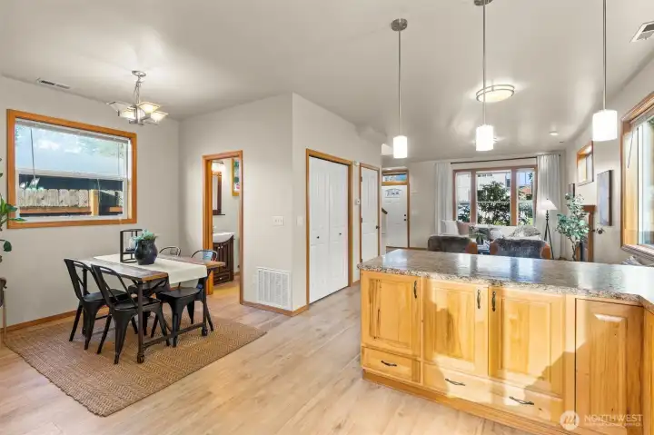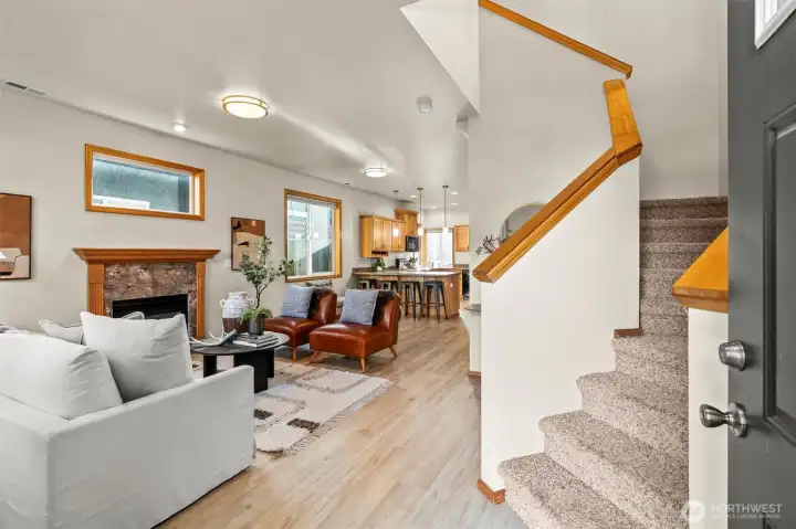 Welcome home to this standout, commuter friendly residence in the heart of central Everett! Built in 2009 this beautifully maintained home features soaring 9-foot ceilings throughout, cozy gas fireplace, chef inspired kitchen with gas cooktop range, massive counter space, rich hickory cabinetry, eat-on bar, and built-in wine rack. Perfect for entertaining this spacious layout offers 3 beds and 2.5 baths, each showcasing custom tiled showers for a spa like feel. Energy efficiency shines with a tankless water heater and Aqua Thermal heat + hardie board siding. Enjoy a charming covered front porch, a low-maintenance backyard retreat, and a detached two car garage with alley access. Minutes to transit, shopping, dining, and major Hwys. No HOA!