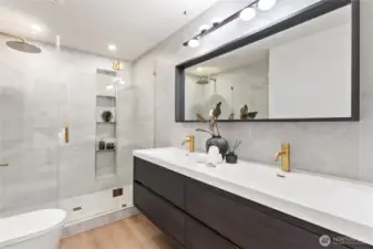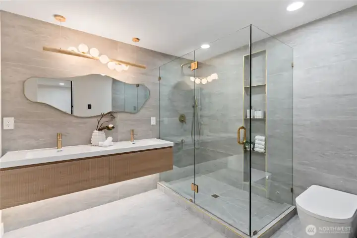This one is truly WOW—an absolute must see.Luxury-designed and meticulously updated,this exceptional home is privately tucked on a quiet cul-de-sac in desirable Burien.The expansive 2,720 sq ft rambler with basement offers 4 bedrooms and 4 bathrooms, including two stunning primary suites. A huge family room and massive rec room provide ideal space for entertaining, relaxing, or play.The gourmet kitchen features a waterfall island and designer finishes that impress at every turn. Enjoy the covered deck with a wood-burning fireplace perfect for Barbecuing while enjoying Mt.Rainier views.Tankless water heater,A/C,and fully fenced yard.Minutes to downtown Seattle with easy access to Hwy 509 and 518,this tunkey luxury home is not to be missed.