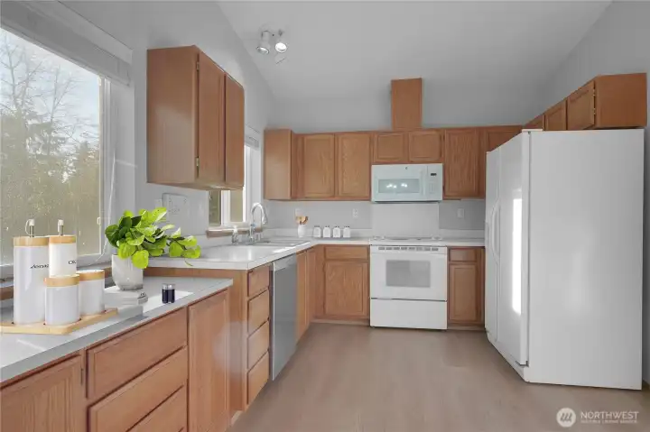 Absolutely charming single-story home on a flat, fully fenced lot just shy of 1/3 acre! Enjoy peace of mind with a new roof, new flooring, updated bathrooms, and fresh interior paint. Inside features three generously sized bedrooms, including a primary with a private 3/4 bath, a large family room, spacious dining area, and a kitchen with a cozy nook. You’ll love the oversized laundry room and abundant storage. Step outside to a composite deck overlooking a huge backyard that backs to green space—perfect for relaxing, entertaining, or tossing a ball. This one checks all the boxes—schedule your showing today!