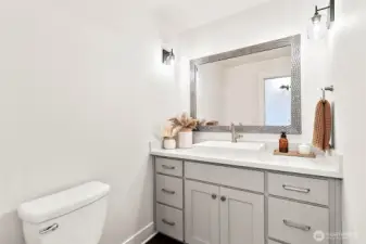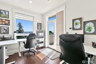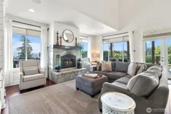 Luxury unfolds beyond a fully fenced, gated property just shy of a half-acre in Edgewood. Manicured landscaping includes mature hedges, irrigation, garden space, fruit trees, and a strawberry patch. Mount Rainier and valley views create a serene backdrop. The 3,116 sq ft home features exposed beams, a dramatic 22’ vaulted ceiling, custom built-ins, integrated sound and security systems, and abundant storage. Three bedrooms plus an office with private deck; main-level primary suite. Finished lower level offers additional living or entertaining space. Expansive concrete paver patio and deck. Oversized garage with 9’ door and shop/workbench area. A rare opportunity in one of Edgewood’s most sought-after locations.