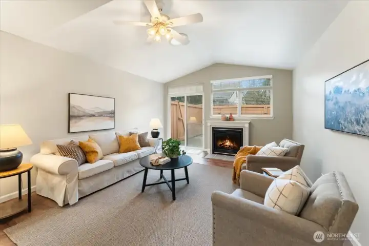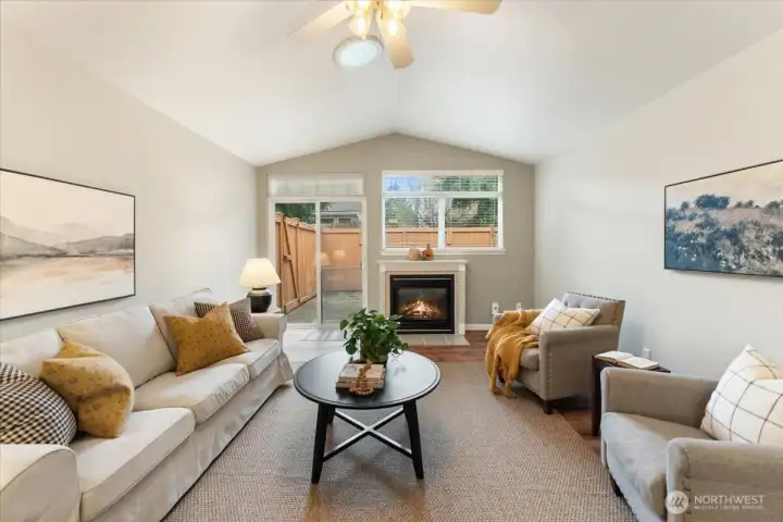 Welcome home to Rainier Crossing! This meticulously maintained 3 bed, 2.25 bath condo features open concept living with a main floor primary suite. You'll love the large living and dining space complete with fireplace that walks out to fully fenced, private patio area with a sun awning. Upstairs features 2 large bedrooms and a full bath with plenty of storage space. Don't forget, a 2-car garage! Close to shopping, schools, restaurants, and more! Don't miss this one!