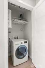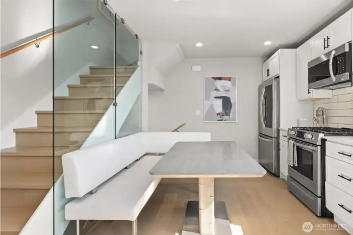 Come see this contemporary and stylish 2Br/1.25Ba corner unit offers posh owner suite with heated floor and well-appointed primary bath. Stainless steel appliances adorned main floor kitchen & living area. 2nd bedroom and 1/2 bath highlighted the 3rd floor, and of course, rooftop deck for outdoor entertaining. Conveniently located near Columbia City and proximity to Mount Baker light rail station. Notable features include central vacuum, tankless hot water, two independent AC/heating units dedicated for 2nd & 3rd floor, pre-wired/connected 1 Gb high speed fiber internet, 4-stars Built Green pending, all-in-one washer/dryer & window blinds are included & installed. No HOA and no rental restrictions.
