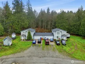 Six-bedroom hill-top duplex near Tulalip Bay and on over seven acres of property. Each unit is equipped with an attached two-car garage. Plenty of room for RV and boat parking, and to build a workshop. Enjoy the seclusion of forested land or develop the property. Great property for investors, or live in one side and have a tenant help pay the mortgage.
