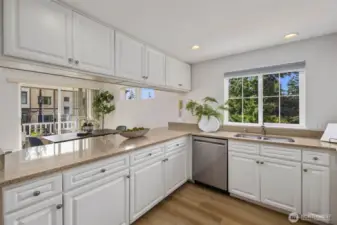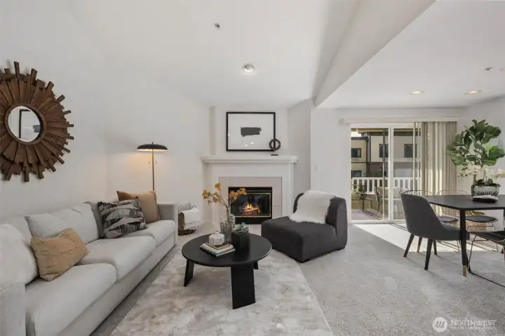Sought-after top floor corner unit with territorial views in a quiet 10-unit 55+ community. This light-filled home offers an open floor plan with vaulted ceilings, cozy gas fireplace, and private sundeck. The chef’s kitchen features quartz counters, stainless appliances, and ample storage. Recent upgrades include fresh interior paint and wide-plank LVP flooring, creating a modern, move-in ready feel. The primary suite includes a spacious bath, while a large second bedroom and bathroom add flexibility. Secure garage parking for two cars, a storage unit, and elevator access provide convenience. Low HOA dues, well-maintained grounds, and easy access to bus lines, shops, parks, and freeway. Pre-inspected, turn-key, and a must-see!