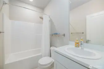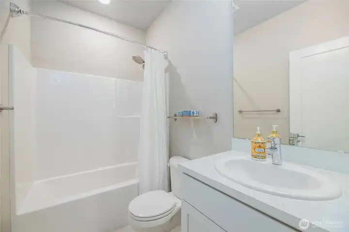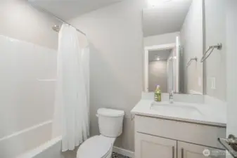 This home offers a thoughtfully planned space in the sought-after Northshore School District! The open-concept main floor features durable Evoke flooring, a spacious kitchen with an oversized island perfect for entertaining, and a large living area with an electric fireplace. The primary suite includes a spa-like bath, while the covered, heated outdoor living space is ideal year-round. An entry-level bedroom with private bath provides flexibility for guests or a home office. Community amenities include a private dog park, playground, and shared open spaces. Conveniently located near I-5 and I-405, this home blends modern style, function, and connectivity in one perfect package! Low HOA covers insurance, gutter cleaning, and pest control.