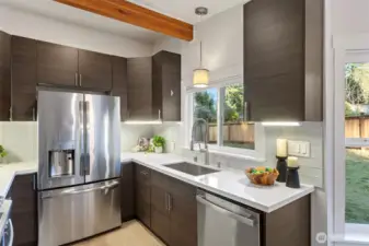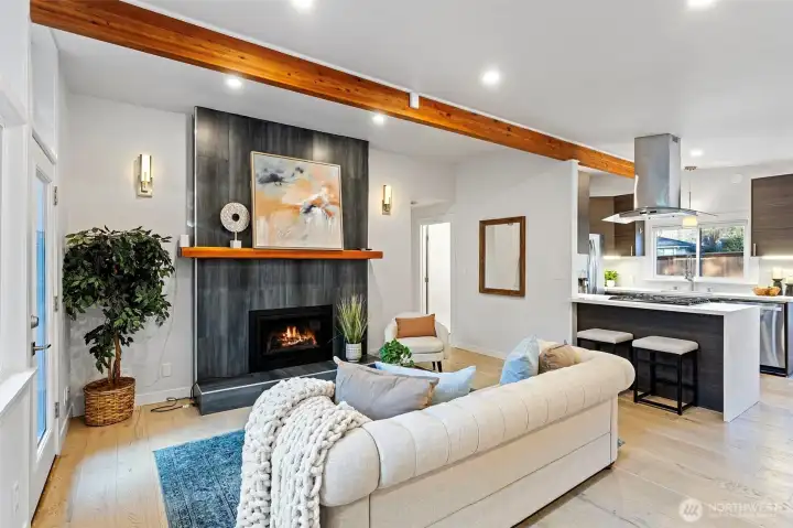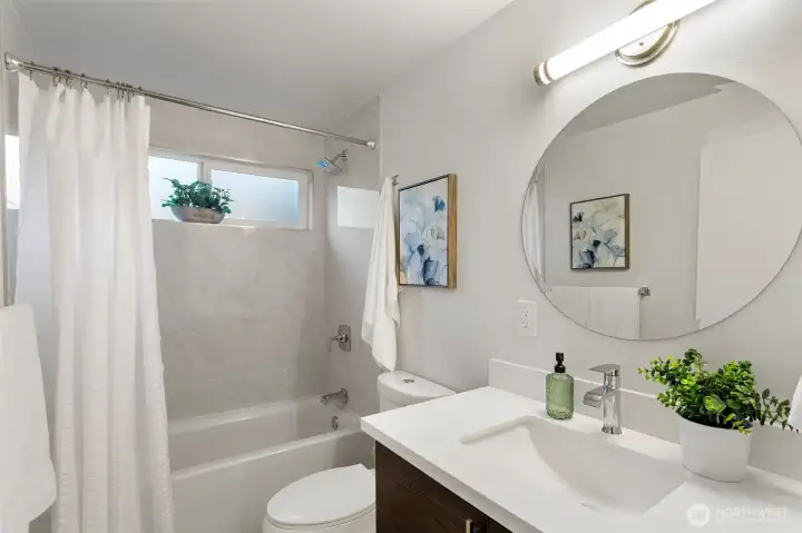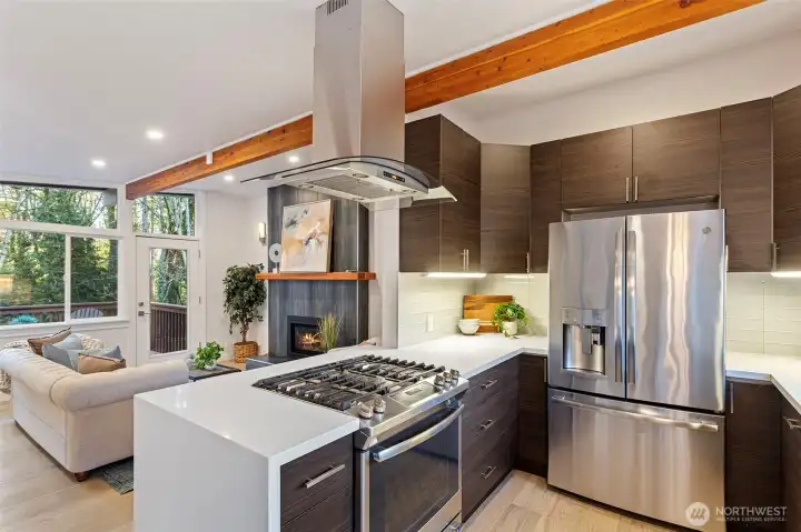 This nicely updated 3-bedroom, 2.25-bath home is ideally located in the highly sought-after Bellevue School District. The home features beautifully remodeled bathrooms and a modern kitchen with quartz countertops, stainless steel appliances, and a gas cooktop, offering thoughtful design and high-end finishes throughout. Additional highlights include a heat pump, living room with a gas fireplace, and a spacious primary suite with a walk-in closet and large en-suite bathroom featuring heated floors. A wet bar downstairs provides a perfect space for entertaining or relaxing. Outdoor and functional features include a brand-new front yard fence, spacious deck overlooking the private backyard and greenbelt, attached carport, RV parking, and a detached 16’ x 24’ garage/shop—perfect for storage, hobbies, or workspace. Conveniently located just minutes to I-90 and I-405, with easy access to shopping, dining, and everyday amenities.