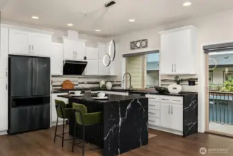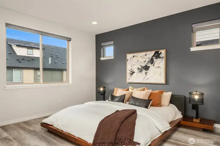 A stunning, one-of-a-kind corner unit custom home in the Westridge community of Issaquah Highlands! Open concept main floor is highlighted by a floor-to-ceiling backlit porcelain media wall, CB2 lighting, a built-in wine fridge & hardwood floors. The ultimate chef’s kitchen features a leather-finished waterfall-edge island, top-of-the-line appliances, a dual-sensor DC motor vent hood, plus ample storage & pantry. The largest home at Westridge, offering 4 bedrooms, 3.75 baths, plus a huge top-floor bonus rm w/ rooftop deck. The owner’s suite features a fully finished walk-in closet and a chic en-suite bth. Customized side-by-side two-car garage with extra storage. A+ location next to retail and shopping. It’s all here in Issaquah Highlands!