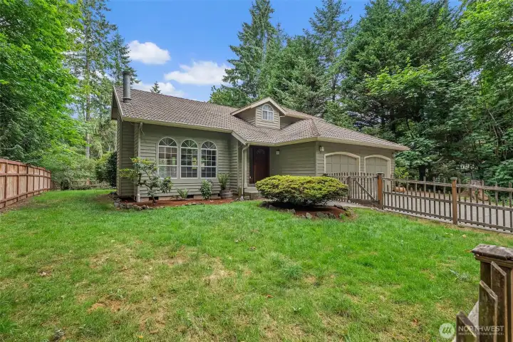 Welcome to this quality-built home nestled on 1.6 acres of serene nature. This spacious home offers an open layout with both living and family rooms and generous bedrooms—perfectly comfortable and inviting. The beautifully designed kitchen features cherry cabinetry, a large granite island, and granite counters. The expansive primary suite includes a walk-in closet, double vanity, radiant heated tile floors, and tiled walk-in shower. Vaulted ceilings in the living room, cedar siding, a tile roof, and a newer heat pump with A/C add to the home's charm and comfort. Enjoy peaceful woodland views from every window, unwind on the back deck, explore your own private wooded trail, or head to the private community beach front or Fry Cove park.