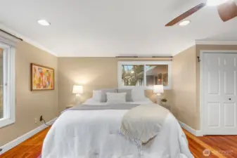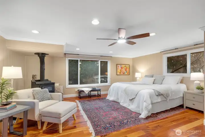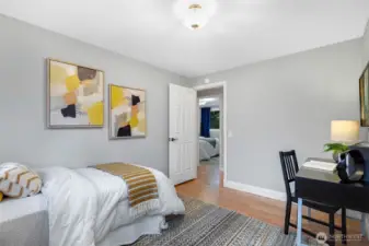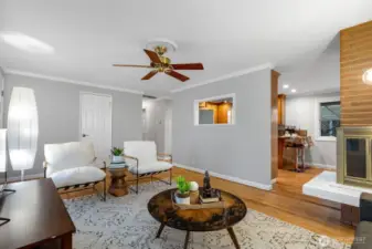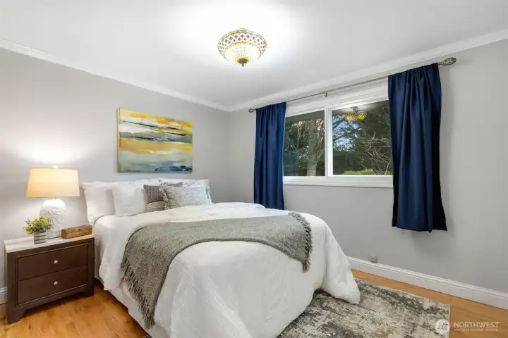 Located in the sought-after North Hill neighborhood just east of Puget Sound, this one-level rambler offers a rare four-bedroom layout. Refinished oak hardwoods and wood burning fireplace add warmth and charm. A private primary suite and generous bedrooms with double closets provide flexibility. Great kitchen to cook in with quartz counters, stainless appliances, plentiful cabinets + a dedicated dining space. Outdoor living shines with a covered patio, hot tub and gazebo, mature gardens + sunset views from the front porch. Central A/C, a heat pump, triple-pane windows, fully re-piped+new water line and added outside storage. 1mi to Marine View Park, 2mi to the Des Moines waterfront, easy commute to Seattle. Relaxed living in this cozy home!