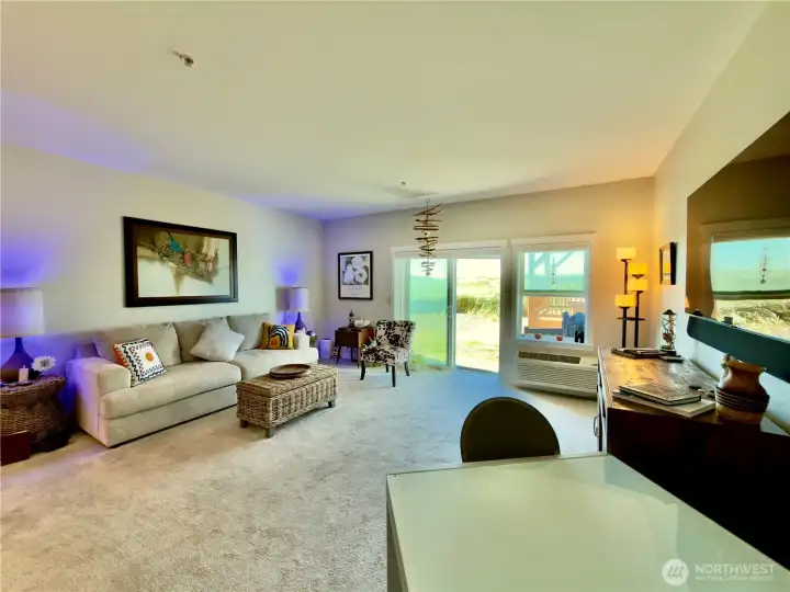 Impeccably updated first-floor unit offering incredible coastal living with direct access to the dunes. This thoughtfully upgraded home features high-end appliances, including a full-size stackable W/D, along with designer finishes throughout. Custom wall treatments, upgraded carpeting, beautiful tile backsplash, glass shower doors, new interior doors & a new sliding glass door that brings in amazing natural light. A new heating and air conditioning unit provides year-round comfort. The open, inviting layout is ideal for relaxation & entertaining. Sold mostly furnished with quality, high-end furnishings, allowing you to step right in and enjoy from day one. Well suited for full-time living, a vacation getaway, or a long term rental.