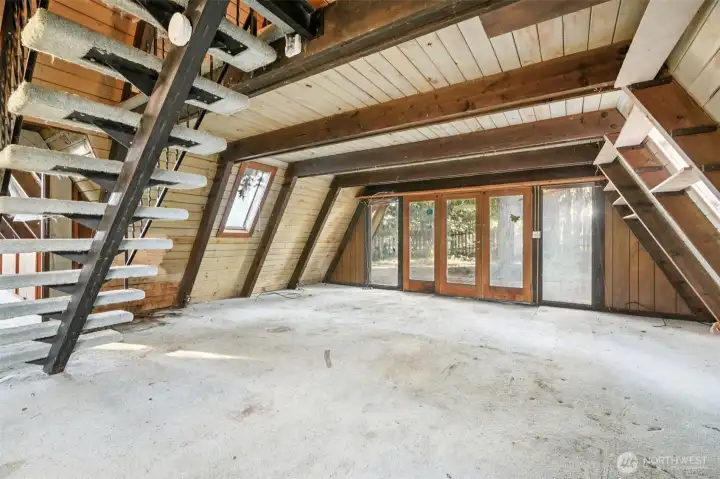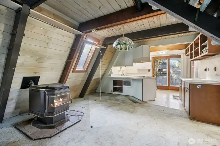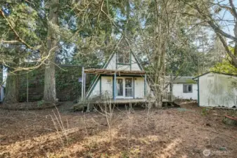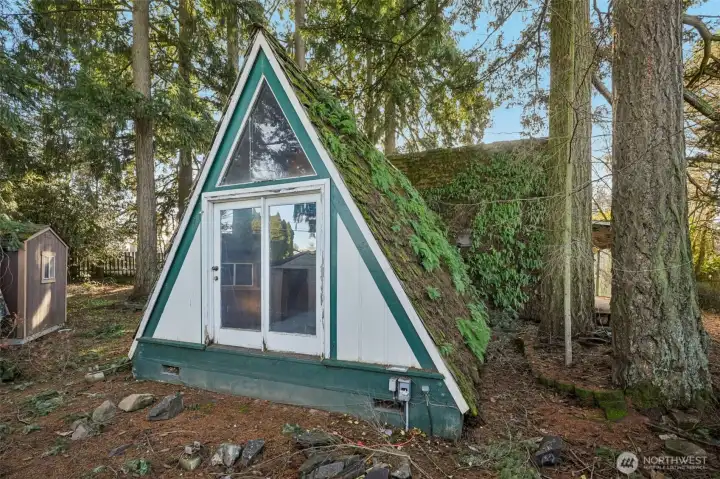 Westwood fixer with strong potential! This rustic A-frame offers a unique opportunity to renovate and enjoy a charming home in a highly desirable location close to everything—or rebuild and create your custom dream home. The property is on septic, with public sewer available. Features include a pellet stove, a dedicated laundry room, and a very private setting surrounded by mature trees. Three sheds and a detached garage/workshop provide excellent storage and workspace options.