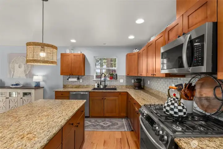 Welcome home to this beautifully updated rambler in a charming community. Inside, enjoy brand-new true red oak hardwood floors, new carpet in the bedrooms, and an open-concept layout ideal for entertaining. The kitchen features new appliances, granite countertops, tile backsplash, and a butler’s pantry with wine fridge. The spacious primary suite offers new quartz countertops, a tiled walk-in shower with pull-down seat, and elegant tile flooring. Additional upgrades include a renovated guest bath, new 55-gallon electric water heater, EV charger in the garage, and a premium swim spa valued at $25,000. Fully fenced backyard with mature landscaping and convenient access to downtown Shelton, shopping, dining, and healthcare.