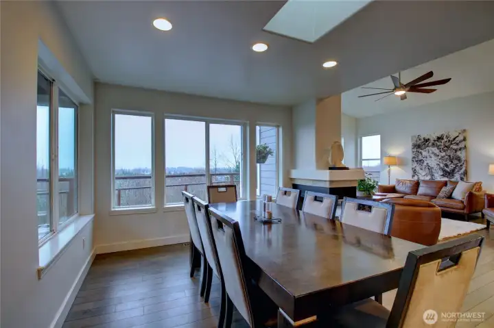 NW Contemporary rambler with daylight basement featuring 9' ceilings, abundant windows, and stunning views of the Skagit Valley and the Sound with amazing sunsets. Ideal floorplan with view-focused living spaces and expansive decks; amazing water feature. Main level offers a luxurious primary suite, beautiful kitchen, den/study, and half bath. Daylight basement includes 2 bedrooms, full bath, family room, and large storage area with potential for additional finished space. Spacious 3-car garage (810 sq. ft.) completes this exceptional home on 3/10 acre. Convenient location for shopping, dining, schools, and medical. Easy I-5 access for commuting.